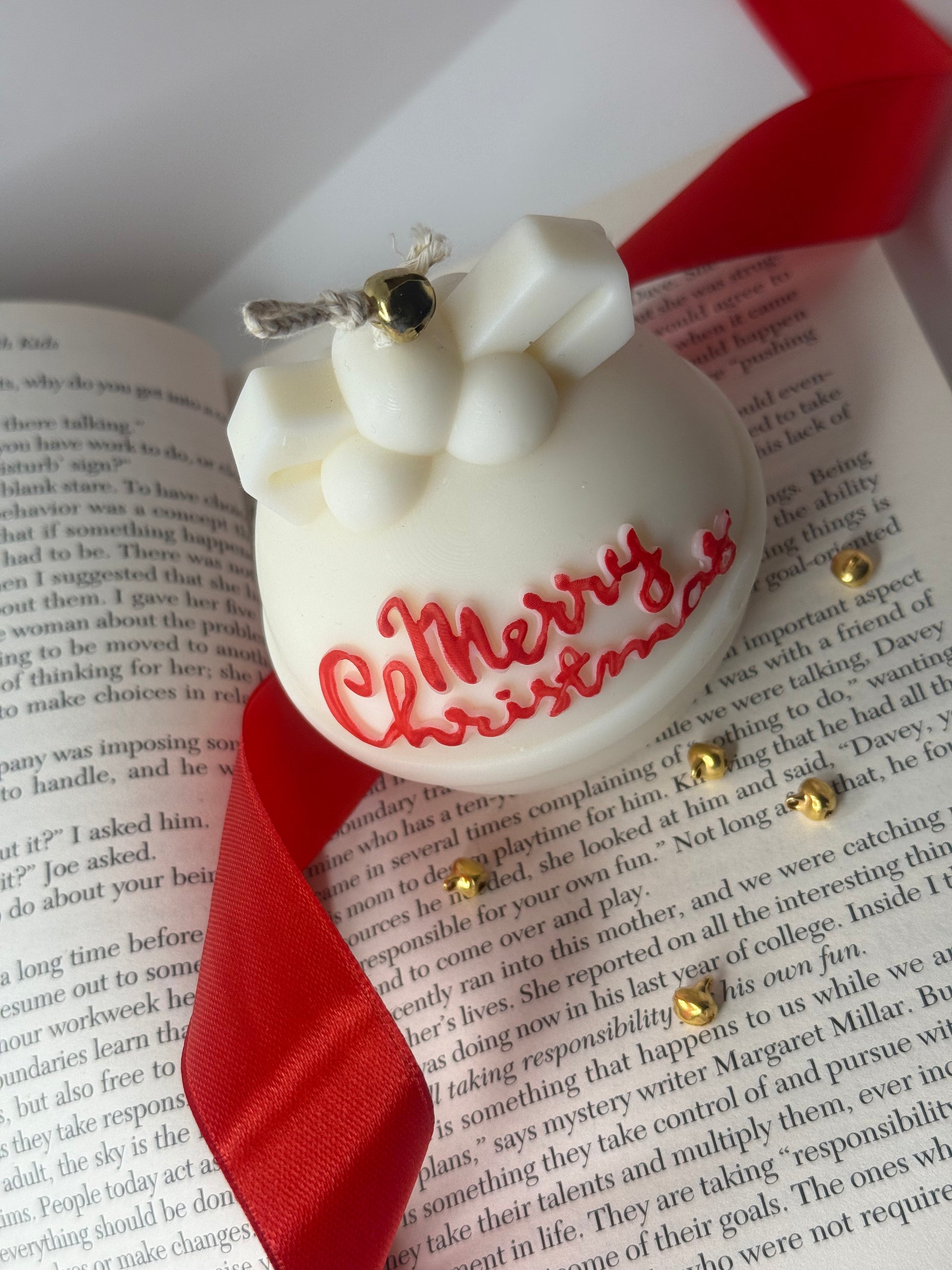 Gift box includes candle with wrapping paper, Merry Christmas card and a cute red bow.